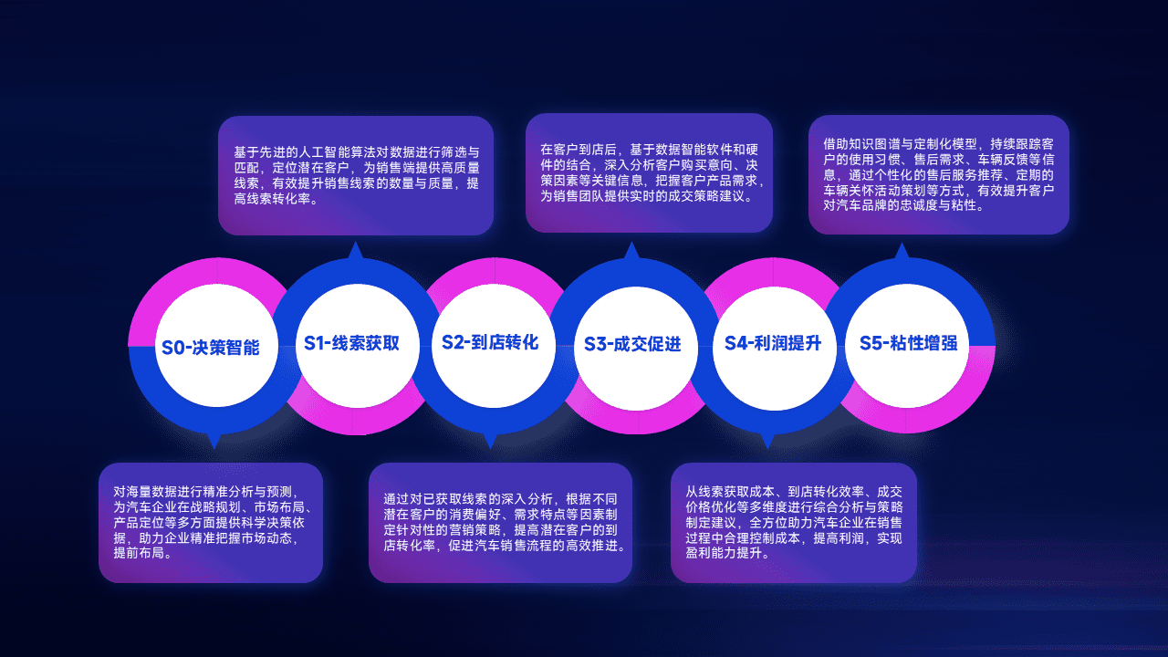 通过拓宽潜在客户来源、、、优化线索分配并提高到店转化率,,,,以增强销售效率。。。。同时,,,,利用线索数据不断优化分析模型,,有效提升转化率,,扩大营销影响力。。